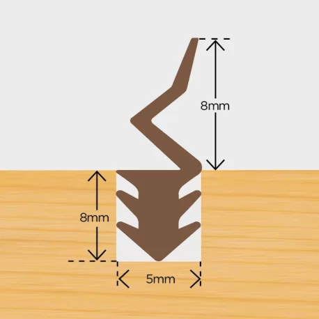 Speciel tætningsliste til vindue, dør eller karm hvor der forefindes en notgang/kile.