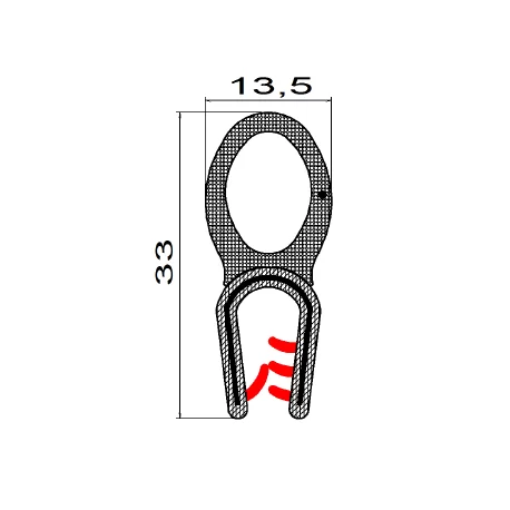 2,5-5mm Kantenschutzprofil PVC+EPDM mit Dichtung oben