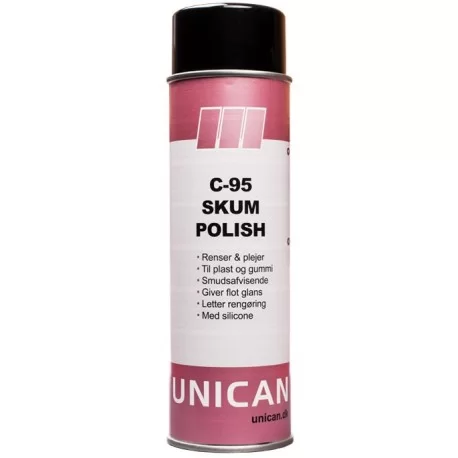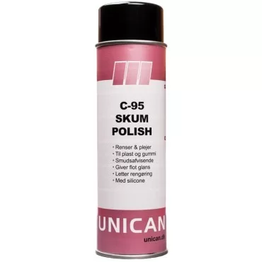 C-95 Skum-Polish wird erfolgreich zur Erhaltung und Wiederherstellung eines schönen Glanzes auf Stahl-, Gummi-, Kunststoff- und lackierten Oberflächen eingesetzt. Das Produkt reinigt gründlich und entfernt effektiv Staub, Schmutz und andere Verunreinigungen.