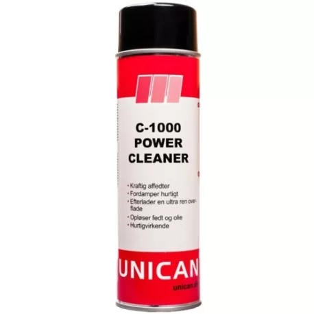 C-1000 Power Cleaner er en ekstrem kraftig, lugtsvag, hurtig fordampende og ikke ætsende industriel affedter. Produktet misfarver ikke metaller og vil virke skånsomt overfor de fleste plast- og gummi typer. C-1000 arbejder hurtigt og efterlader en ren overflade, som derefter er direkte klar til f.eks. limning.